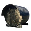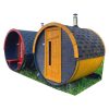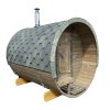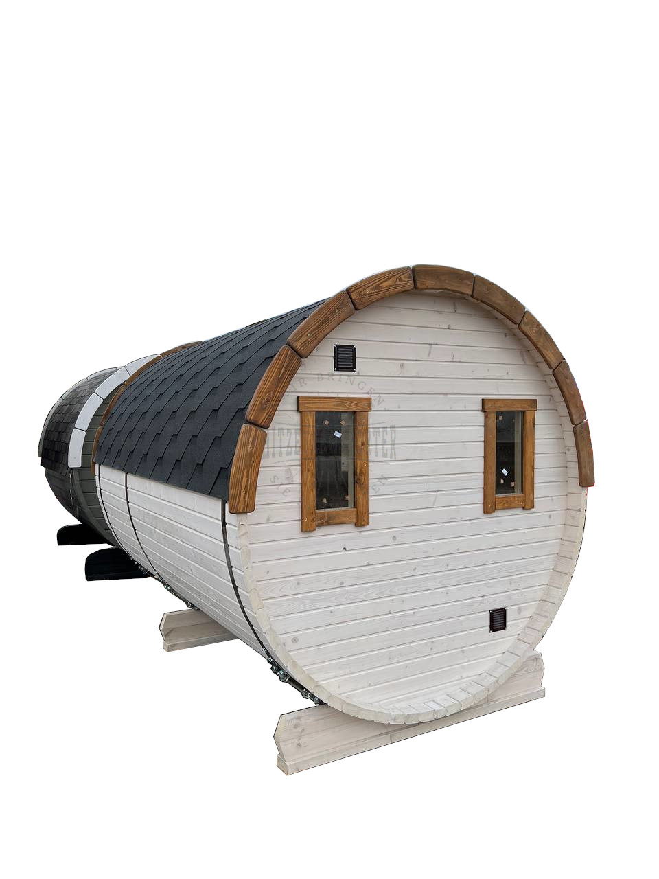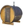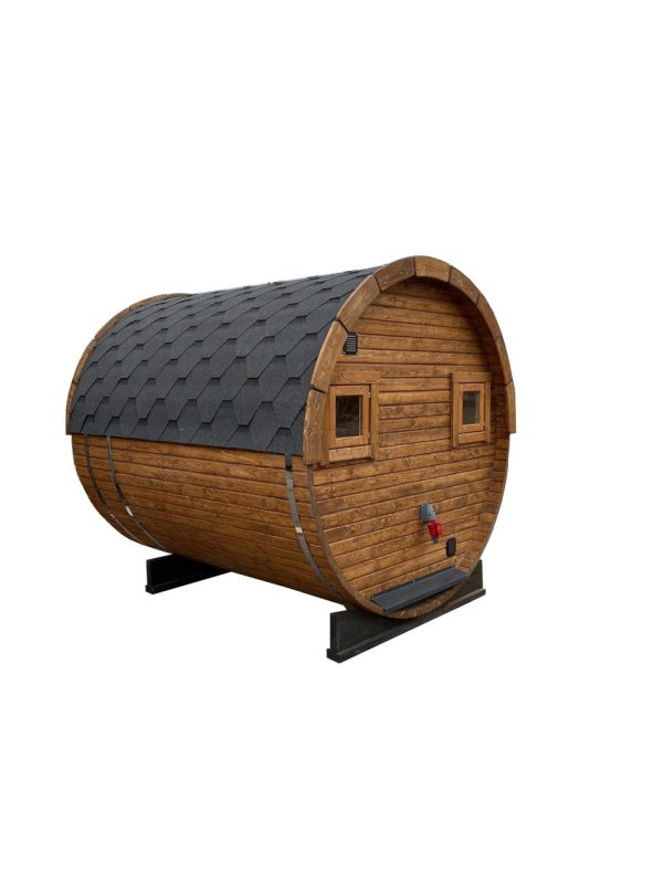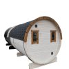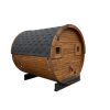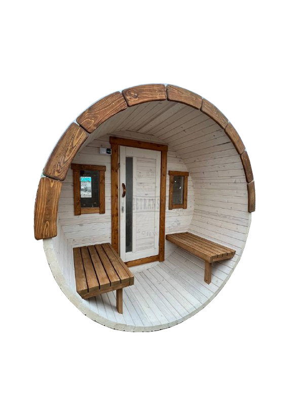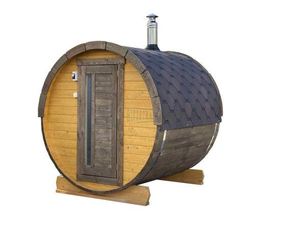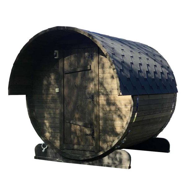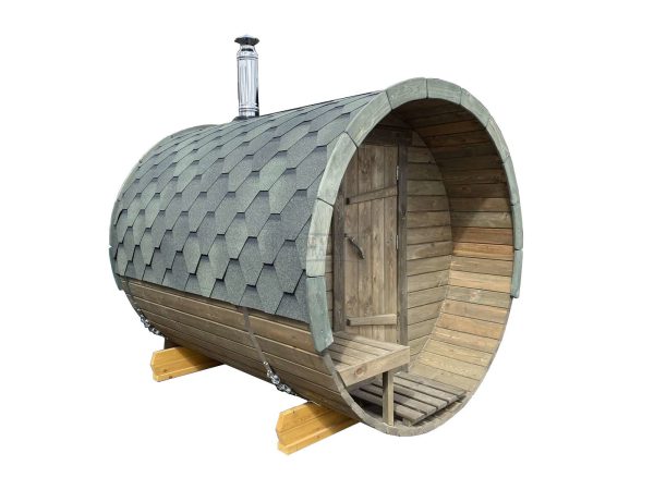 Diese 2,5m lange Fasssauna mit einer Terrasse hat einen Durchmesser von 2,2m, also auch für größere Menschen geeignet. Die Wände aus Fichte mit einer Wandstärke von 42mm bis 45mm isolieren die Sauna gut und halten somit die Wärme ziemlich gut, damit Sie nicht auskühlen.
